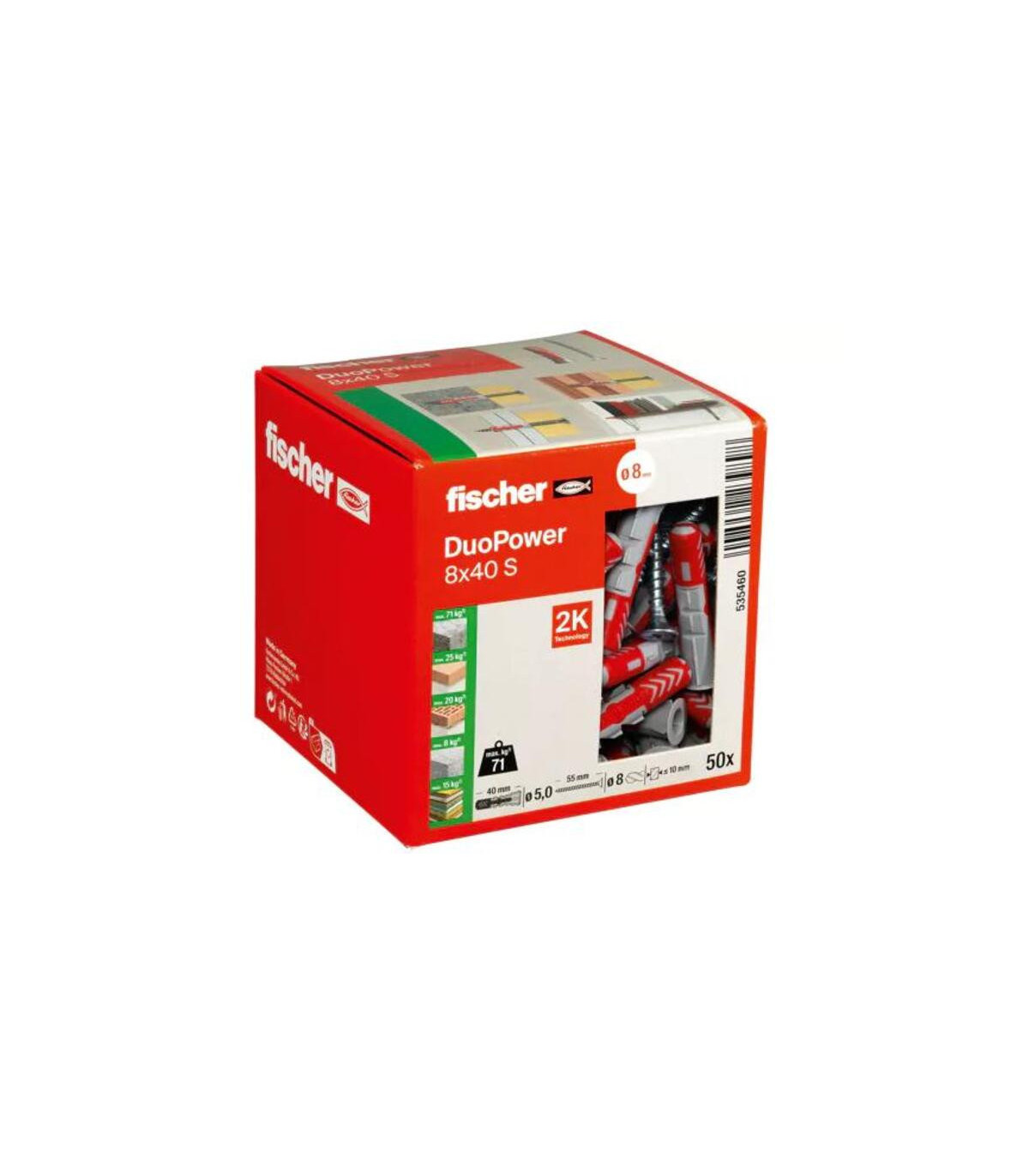 El Taco Duopower 8x40 S de Fischer es un sistema de fijación versátil y de alto rendimiento, diseñado para ofrecer una sujeción segura en distintos materiales, como hormigón, ladrillo, piedra o paneles de yeso. Su diseño innovador permite que el taco se expanda de manera óptima según el tipo de material, garantizando una fijación firme y estable en cualquier superficie. Este modelo viene en caja de 50 unidades, lo que lo hace ideal tanto para profesionales de la construcción como para proyectos de bricolaje en los que se requiera gran cantidad de tacos de calidad y durabilidad.Fabricado con materiales de alta resistencia, el Taco Duopower 8x40 S asegura un rendimiento prolongado y confiable, incluso bajo cargas importantes. Su instalación es fácil y rápida, reduciendo el tiempo de trabajo y aumentando la eficiencia en cada proyecto. Gracias a su compatibilidad con tornillos de distintos diámetros y su capacidad de adaptarse a diferentes condiciones de instalación, este taco se convier