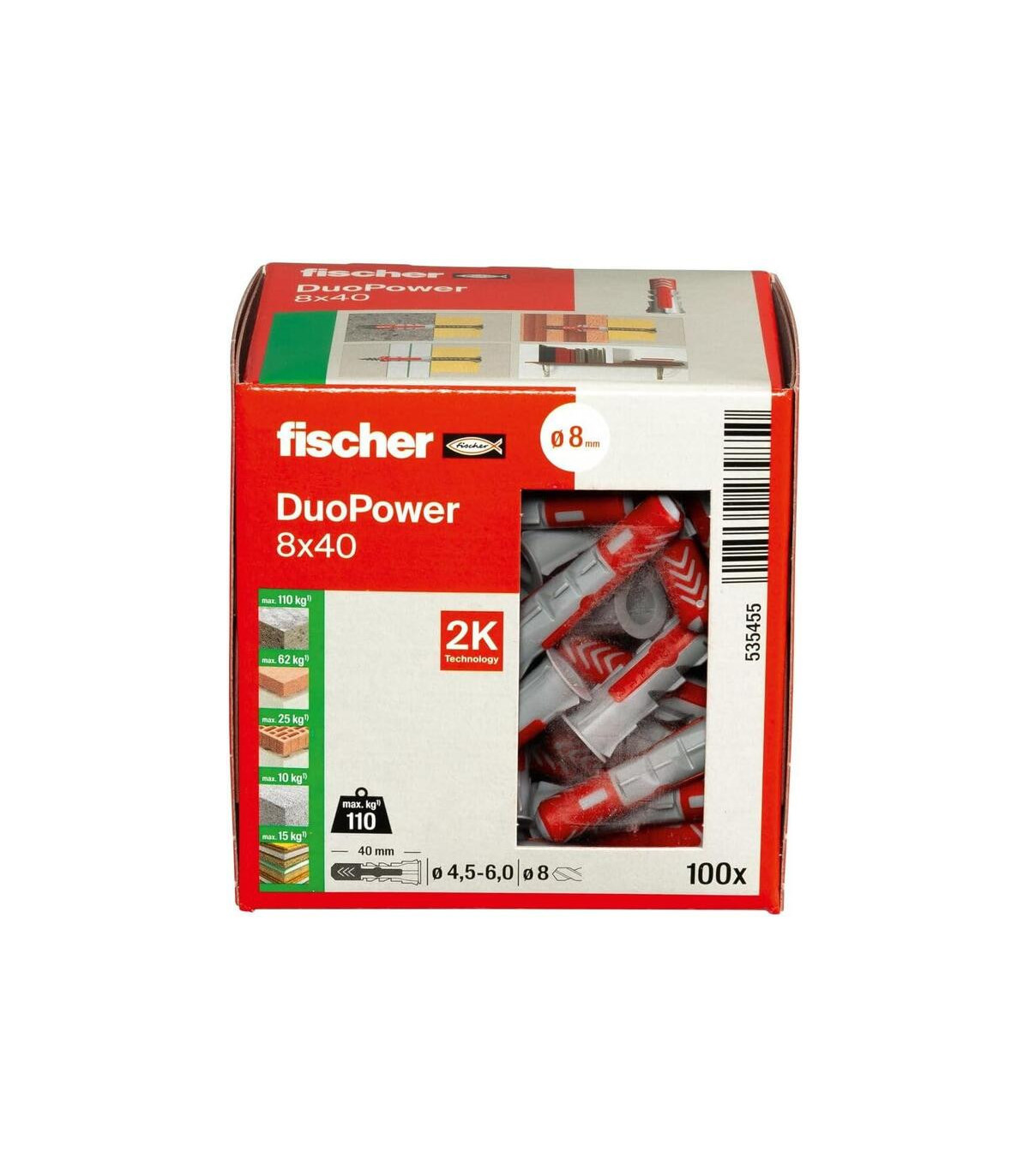 El taco DuoPower 8x40, referencia 570410, es un sistema de fijación avanzado que combina materiales de alto rendimiento para proporcionar una sujeción segura y fiable en distintos tipos de superficies, como hormigón, ladrillo, yeso o materiales huecos.Cada paquete contiene 100 unidades + 20 unidades extra, lo que permite cubrir proyectos grandes sin preocuparse por quedarse corto. Su diseño innovador DuoPower asegura que el taco se expanda de forma óptima según el material base, ofreciendo una fijación resistente a cargas medias y altas, y minimizando el riesgo de rotura o desplazamiento.Fabricado con plástico de alta calidad, garantiza durabilidad y resistencia a la deformación, incluso en condiciones de uso exigentes. Es ideal para colgar estanterías, muebles, armarios, cuadros y otros elementos domésticos o profesionales, asegurando una instalación rápida, sencilla y segura.