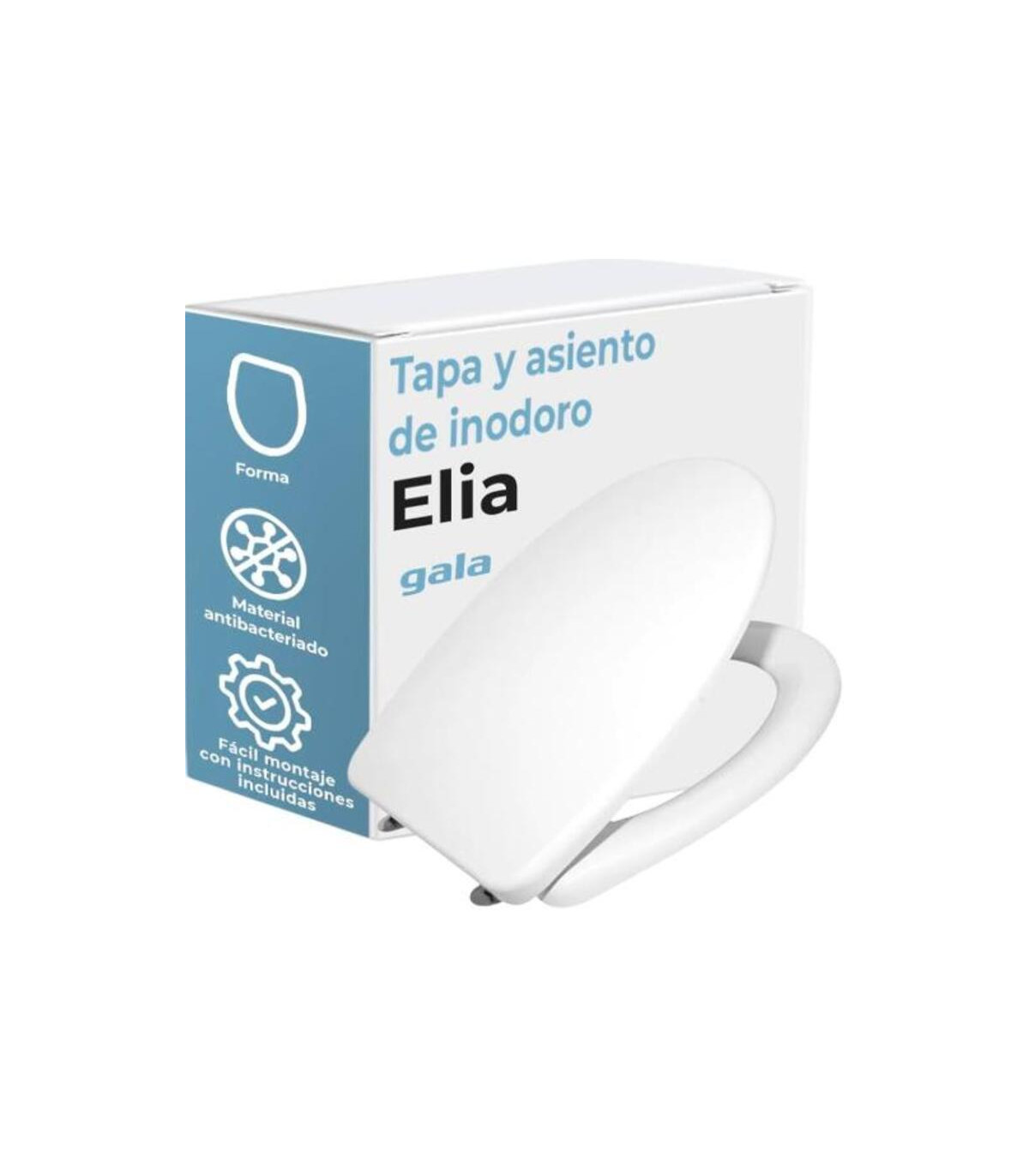 Asiento fijo para inodoro. Los productos Gala están garantizados ante cualquier defecto de fabricación, siempre y cuando la instalación haya sido efectuada de acuerdo con las instrucciones de instalación de Gala y, aplicando la normativa en vigor para instalaciones eléctricas y de saneamiento La limpieza se realizará preferentemente con detergente liquido y un cepillo o esponja. No rascar con cuchillas o estropajos de acero. El asiento ABS Elia de Gala (5137001) en color blanco està dissenyat per oferir una combinació perfecta de comoditat, funcionalitat i estil. La seva estructura ergonòmica s’adapta a la forma natural del cos, garantint un ús còmode i agradable en qualsevol bany. El disseny net i modern permet integrar-lo fàcilment en diferents tipus de lavabos i entorns, aportant un toc elegant i discret que millora l’aspecte general de l’espai.Fabricat amb materials d’alta qualitat com l’ABS, aquest asiento destaca per la seva resistència i durabilitat, així com per la facilitat de