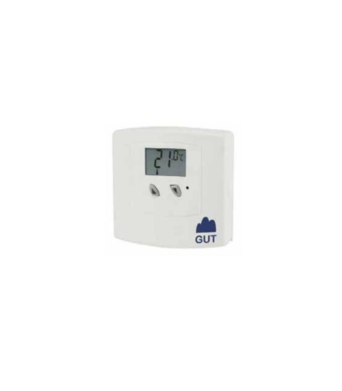 Termostato ambiente electrónico digital diario para instalaciones de calefacción. Escala: 5 a 35ºC. Diferencial de 0.5ºC. Poder de ruptura 5 (3.5) Amperios a 250 voltios. El termostato ambiente electrónico digital GUT és un dispositiu avançat dissenyat per controlar de manera precisa la temperatura de qualsevol espai amb instal·lació de calefacció. Gràcies a la seva pantalla digital i interfície intuïtiva, permet ajustar la temperatura amb gran exactitud, garantint un ambient còmode i constant. El seu disseny modern i compacte s’integra fàcilment en qualsevol tipus d’interior, aportant funcionalitat sense comprometre l’estètica del lloc.Aquest termostat digital és ideal tant per a ús domèstic com professional, ja que permet programar horaris i nivells de temperatura, millorant l’eficiència energètica i reduint el consum innecessari. La seva instal·lació és senzilla i compatible amb la majoria de sistemes de calefacció estàndard, assegurant un funcionament fiable i durador. Amb aquest d
