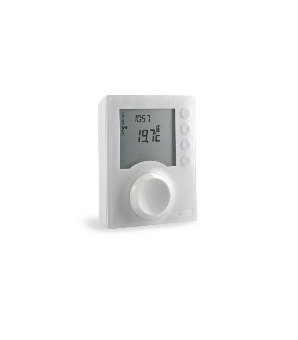 Termostato de ambiente filar TYBOX 117+ para la gestión programada de la calefacción por agua caliente - Alimentación por pilas. Regulación para caldera, bomba de calor (no reversible) o estufa de pelet. Regulación Proporcional Integral Derivada (PID con base de tiempo ajustable) o Todo o Nada. Ajuste de consignas de temperatura : Confort, Economía y Antihelada. Programación rápida : automatización de la calefacción gracias a los numerosos perfiles de programas preestablecidos en el termostato. Programación flexible : personalizable con opción de paso y tipo de programa (diaria o semanal). Función de encendido inteligente de la calefacción : anticipación del período de calentamiento. Función de ausencia no programada : anula la temperatura de tu termostato en caso de un evento/imprevisto inesperado. Modo vacaciones : cambia en modo Antihelada en caso de una ausencia prolongada gracias al calendario. Ergonomía mejorada : documentación precisa a través de un código QR a flashear. Termost