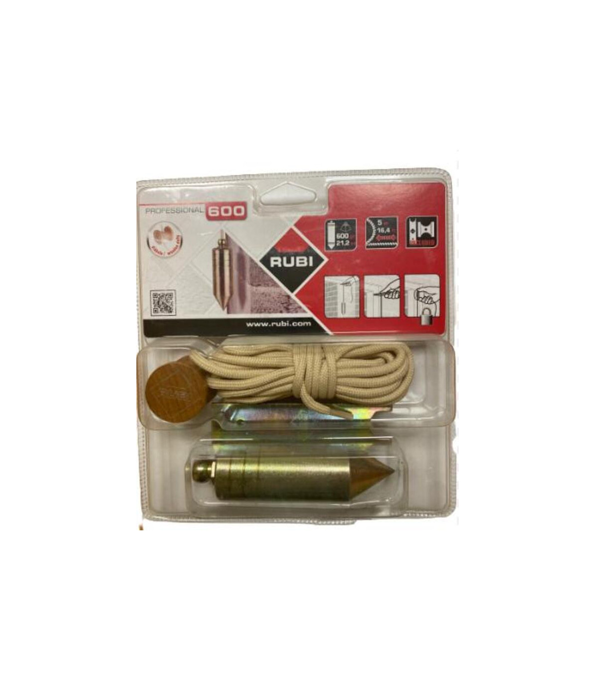 La plomada utiliza la ley de la gravedad para indicarnos que la posición de un elemento constructivo es realmente vertical. El principio en el que se basa el funcionamiento de la plomada es muy simple. La cuerda suspendida con el peso que tiene en su parte inferior deberá ser vertical y perpendicular a cualquier otro plano de nivel con el que se cruce. Las plomadas continúan siendo, hoy en día, una de las herramientas más importantes y utilizadas por el albañil en el sector de la construcción. Por ese motivo, Rubi dispone de una selección de modelos que, sin renunciar al uso tradicional, garantizan un correcto funcionamiento y aseguran la calidad del producto. Plomada RUBI 600 con cuerda de 5 metros, diseñada para trabajos de alineación y verticalidad en construcción y albañilería.Permite marcar puntos precisos, comprobar la verticalidad de paredes, estructuras y carpintería con alta exactitud.Cuenta con peso equilibrado para un colgado estable y cuerda resistente, adecuada para superf